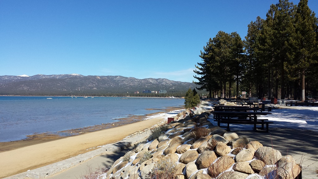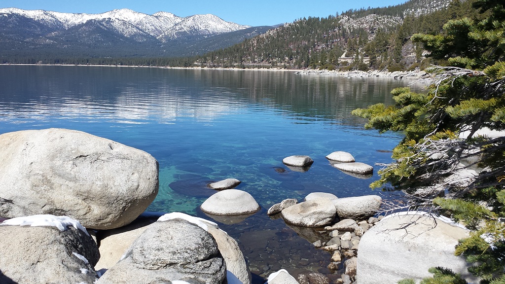The next picture was taken at a little rest area on the Nevada side of Lake Tahoe. It was surrounded by some trails and Chris was able to get a really good picture of just how clear the lake is.