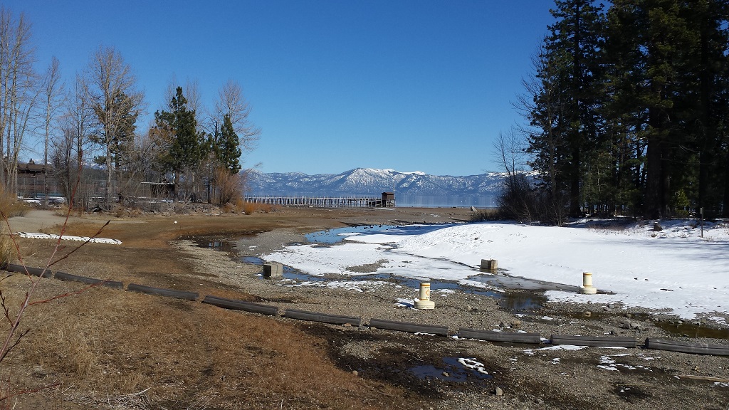 Here is Joe pushing his mama near the Lake Tahoe Dam in Tahoe City back on the California side of Lake Tahoe. The second picture was also taken at the dam and shows just how low the lake level is due to the ongoing drought that California has been experiencing.