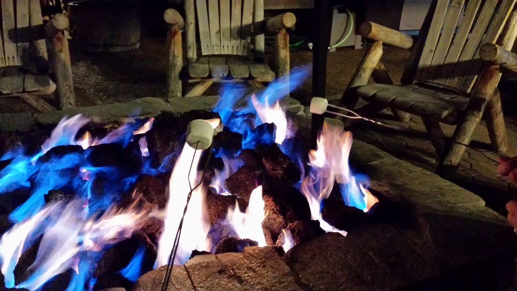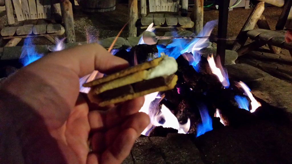 By this time we were all exhausted from a long, but fun day. Since Joe had to work the next day we called it a night and said our goodbyes. Chris and I headed back to the room to relax for a bit before we took advantage of a little perk at the Lodge. Every night from 7pm to 9pm you can roast marshmallows and make s’mores by the fireside. (Joe was with us the previous night to enjoy the fire.)