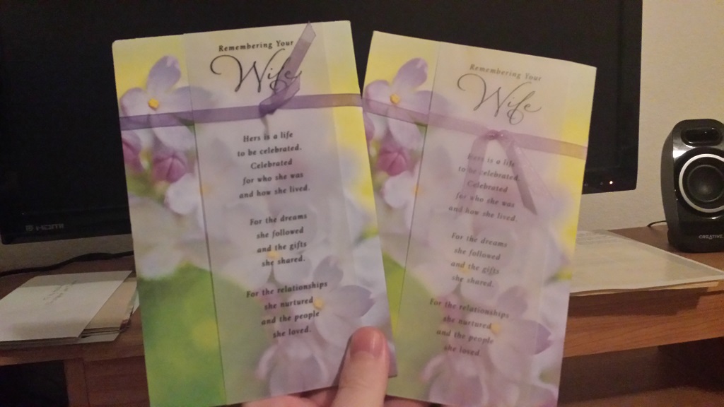 I also received a card from Diane & Pete Smith and also one from the local Hospice that helped Wendy at the end. I appreciate all the well wishes, condolences, sympathies, etc. It’s nice to know there are people out there who care, even if I haven’t met some of you. =)